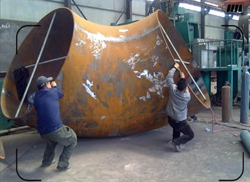 大口徑彎頭:一種焊管推制的大口徑彎頭屬于金屬管件技術(shù)領(lǐng)域,用以解決現(xiàn)有大口徑彎頭使用壽命短的問(wèn)題。它是采用大口徑薄壁彎頭主體,在大口徑薄壁彎頭主 體的側(cè)面體上聯(lián)接有一道焊縫。其結(jié)構(gòu)新穎,耐壓強(qiáng)度高,使用壽命長(zhǎng),制造節(jié)省材料,生產(chǎn)成本低,應(yīng)用范圍廣,適用于化工、石油、電力、輸氣等行業(yè),特別是 也適用于低溫條件下的高壓輸氣管道,系一種新型的大口徑彎頭。